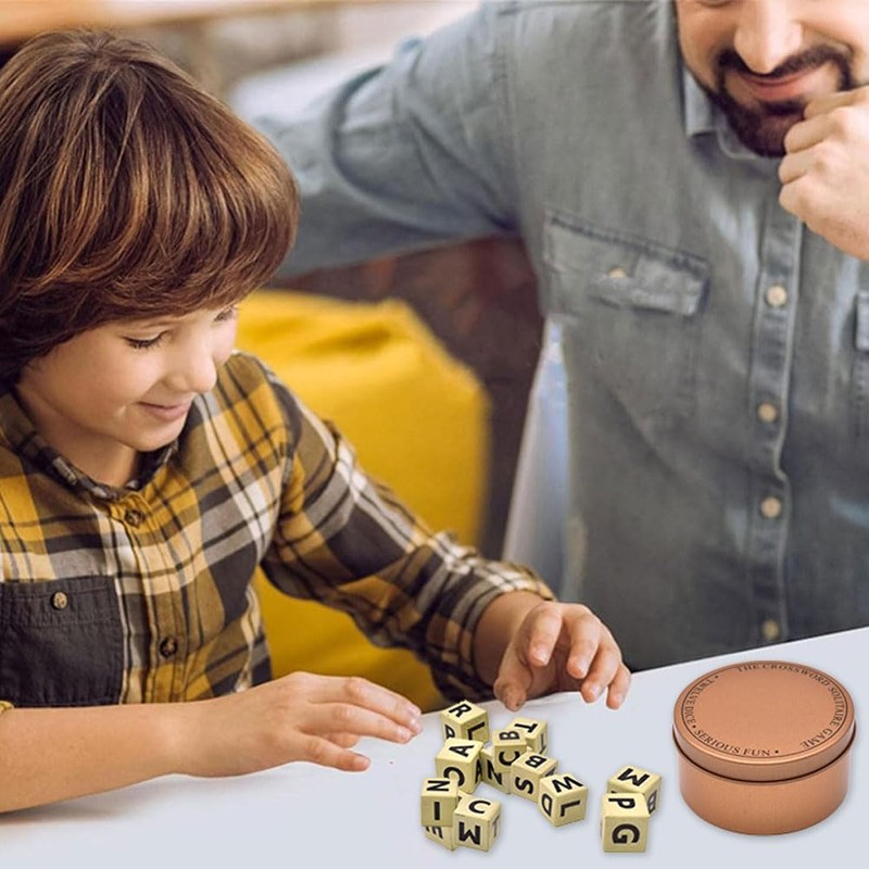 - 🎮【Portable & Versatile Gameplay】 This crossword game box measures 3.8*1.57inch/9.7*4cm , perfect for on-the-go entertainment interaction, The game english letter dice is an ideal choice for parent-child interaction and friend challenges.