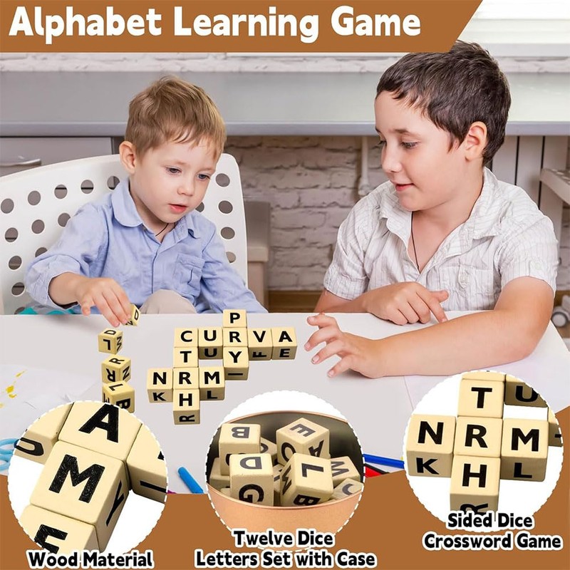 - 🎮【Stimulates Mental Sharpness】This dice letter set is suitable for children aged 3+, spelling toys helps improve children's spelling ability, vocabulary, and language thinking ability, while also enhancing interaction and fun among family members.