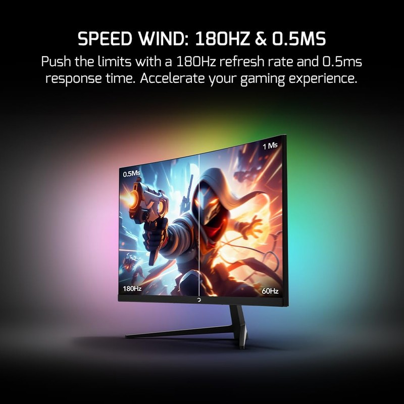 Game Power GAMEPOWER T40 23.6 Inch Curved Gaming Monitor, 180Hz 1080p Display, 0.5ms Response Time, VA Panel, AMD FreeSync, HDR Support, 125% sRGB, RGB Backlight, Dual Speakers, Zero Frame Design, HDMI/DP, 1800R