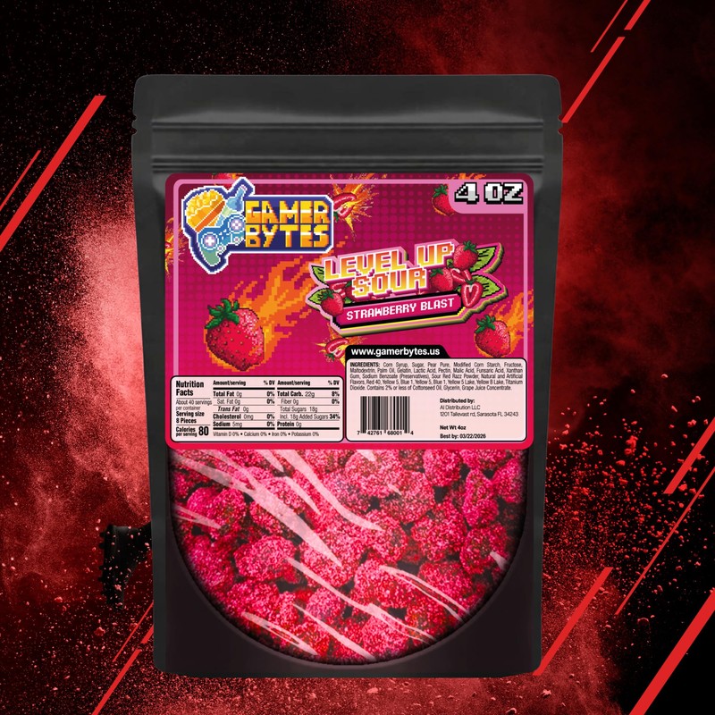 - GAMING-INSPIRED CANDY: Strawberry flavored sour gummy candy designed specifically for gamers, perfect for extended gaming sessions and streaming