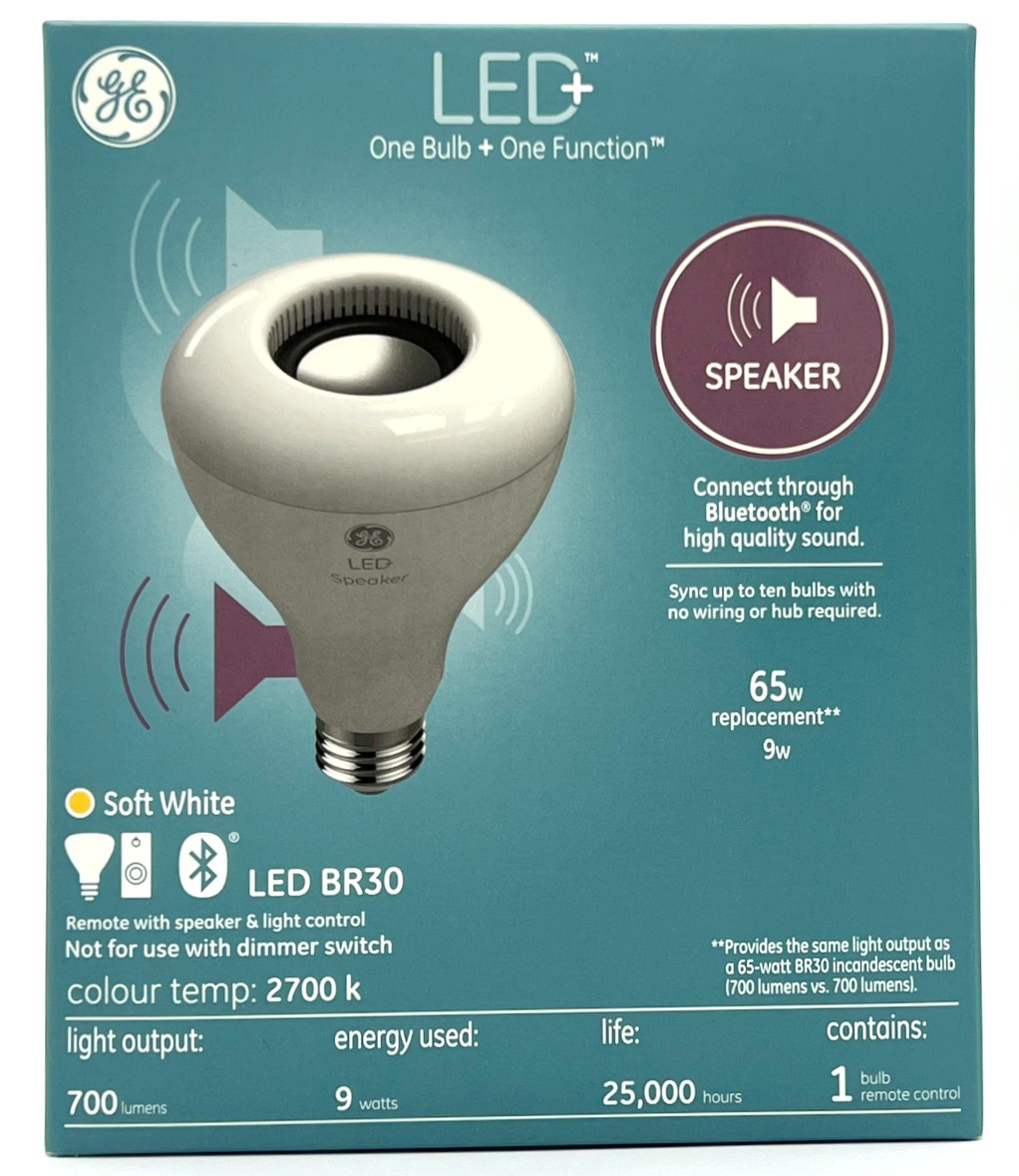 High quality light and sound: These LED light bulbs come as Bluetooth speakers light bulbs without needing to download an additional app. Simply connect through your Bluetooth-enabled device. Energy efficient Bluetooth light bulb: Extend the life of your LED light bulbs and reduce energy costs. The LED speaker light bulb will last 13.7 years based on 3 hours of daily use. Get more sound out of your LED speaker light bulbs: The GE LED+ light bulb has the added benefit of being a Bluetooth light bulb, a simple feature that makes your life a little better. Optimal daytime LED light bulbs: The 65W BR30 LED lights with a speaker light bulb will create the perfect lighting and mood for any room and offer a warmth like no other.
