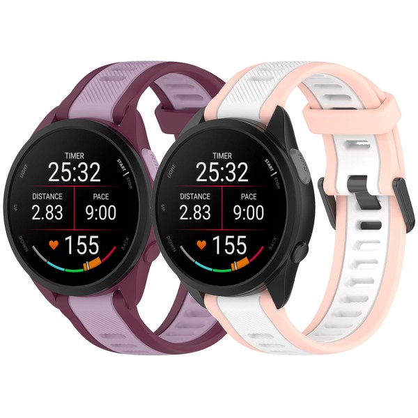 Generic Fit for Garmin Forerunner 165 Watch Bands, 2PACK 20mm Silicone Quick Release Replacement Band Wristband Straps Metal Clasp Fit for Garmin Forerunner 165/Forerunner 168 music (Purple Pink)