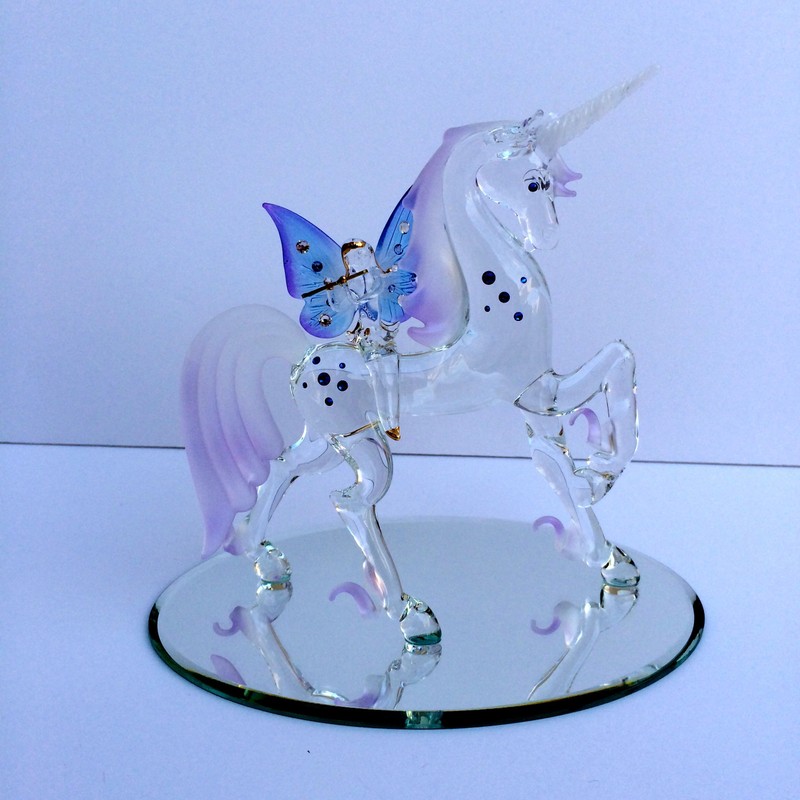 Glass Baron Unicorn with Fairy High Quality, individually hand-crafted glass figurine. Mirror is attached to figurine.