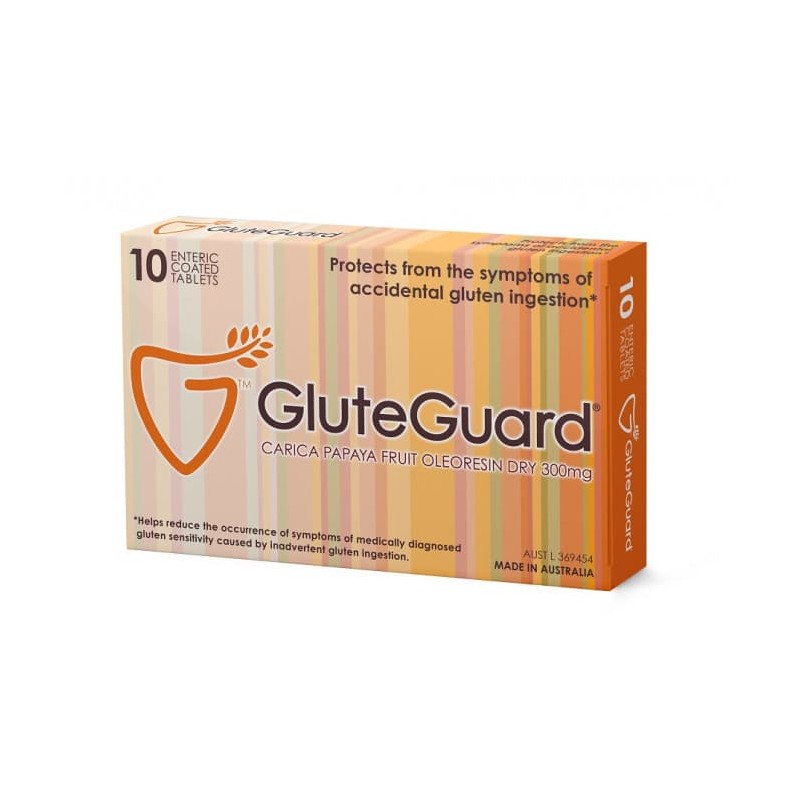 GluteGuard breaks down harmful parts of gluten before they cause symptoms in those with gluten related disorders. By breaking down gluten, GluteGuard helps protect against the symptoms of accidental gluten ingestion in those with medically diagnosed gluten sensitivities. GluteGuard’s active ingredient is a natural extract from the papaya fruit (containing the patented enzyme Caricain, which breaks down gluten) that helps reduce the symptoms of inadvertent gluten ingestion for those with medically diagnosed gluten sensitivity.