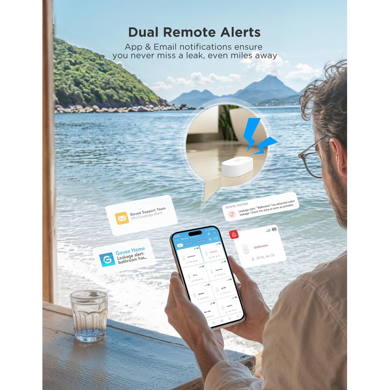 GoveeLife WiFi Water Leak Detector 3 Packs for Home, Water Sensors with 1804ft Long Monitoring Range, Remote Alert with Email & APP Push, Suit for Basement, Kitchen and Bathroom