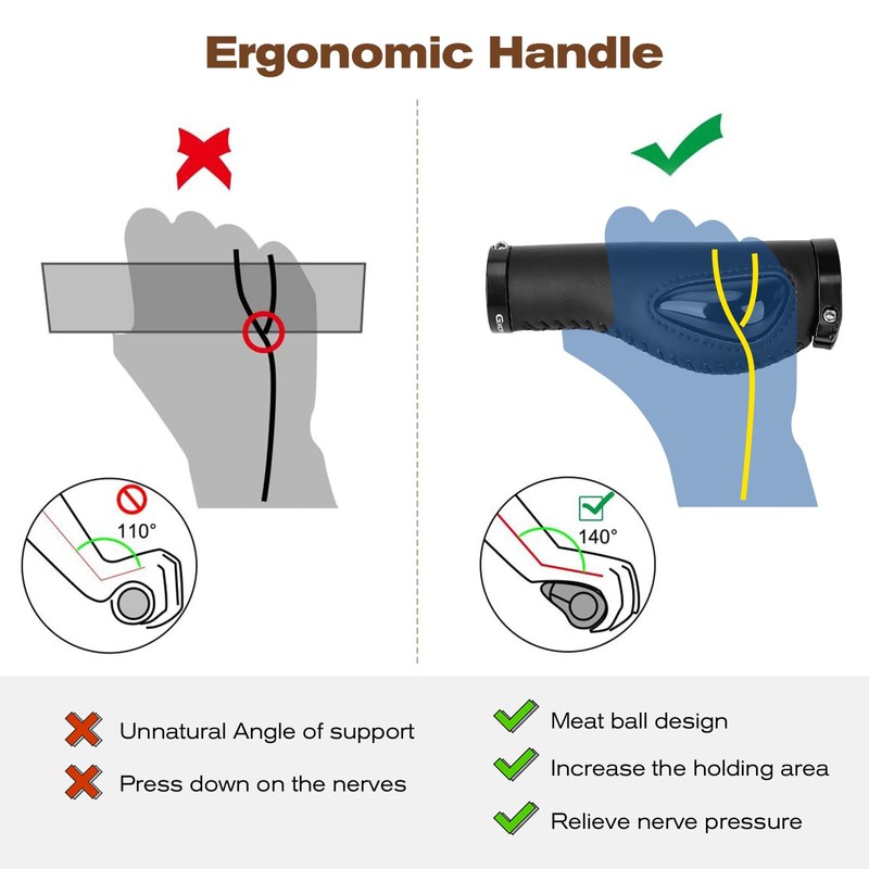 - ERGONOMIC HANDLEBAR GRIPS FOR LONG RIDES:360° palm-support design reduces pressure points during marathons. Contoured bicycle grips adapt naturally to hand positions for competitive cycling.