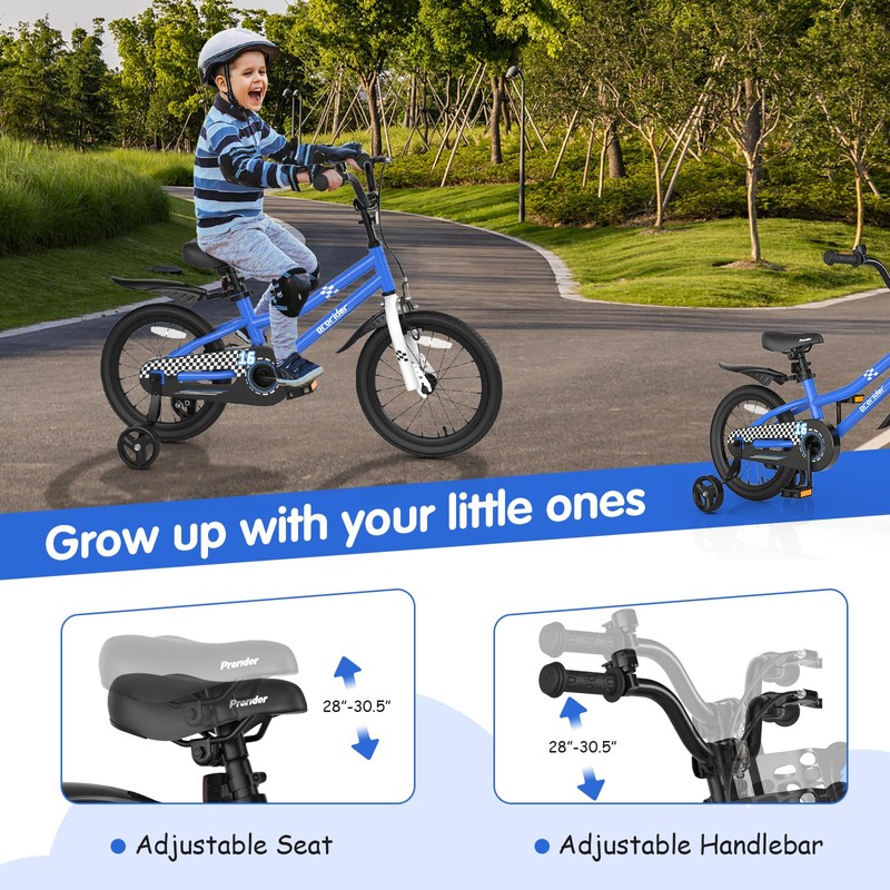 - Grow with Kids: This bicycle for kids features an adjustable handlebar and seat, allowing for a comfortable and customizable fit as your child grows. The training wheels, which provide stability for beginners, can be easily removed to accommodate your child's different needs.