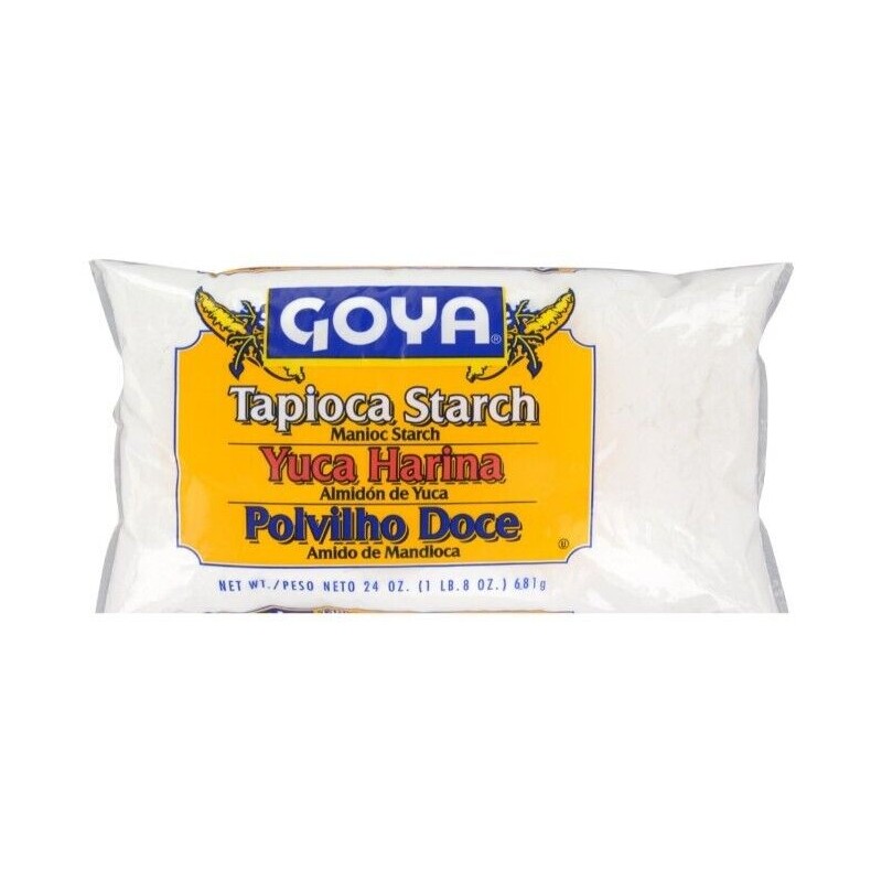 Harina de yuca Goya - Tapioca Starch - 24oz..Goya Yuca Harina on hand for a variety of recipes. This product is an ideal alternative to wheat flour and has multiple uses for baking and cooking. Goya tapioca starch has a slightly sweet flavor. It comes from the South American cassava plant and helps improve the texture of baked goods. Goya tapioca flour can also bind gluten-free recipes and makes a good substitute for corn starch. It can thicken sauces, soups and desserts too.