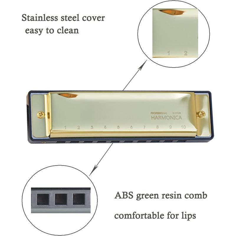 Wonderful Tone: The harmonica adopts bronze reeds, so it is not easy to be aged and broken, -resistant, durable, and highly . The harmonica has a clear tone in the soprano part, a thick and tone in the bass part, and a nice resonance effect.