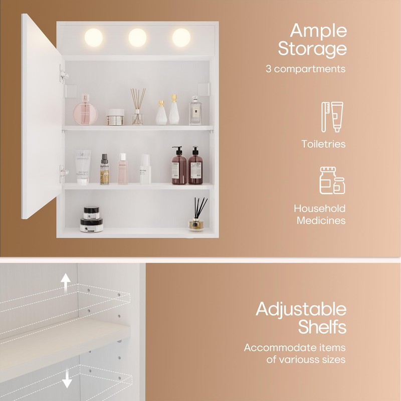 - 【Adjustable Shelves】The cabinet features adjustable shelves. You can arrange interior space flexible of the cabinet, providing ample space to store cosmetics razors, cups, toothbrushes and more.