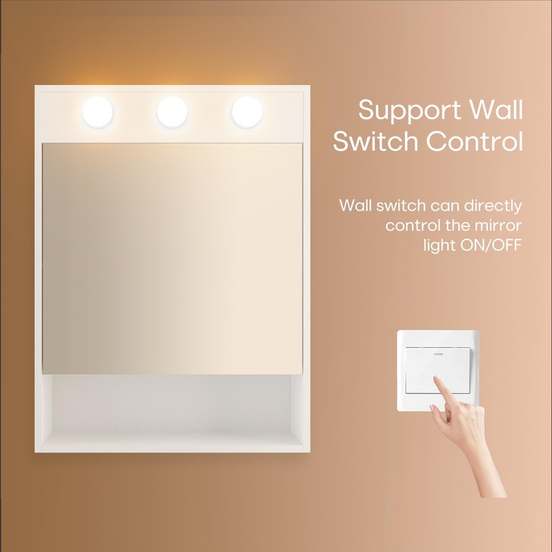 - 【Stepless Brightness Adjustment】You can long press the rotation button at the bottom to adjust the bright of the led lighted medicine cabinet from 10% to 100%.