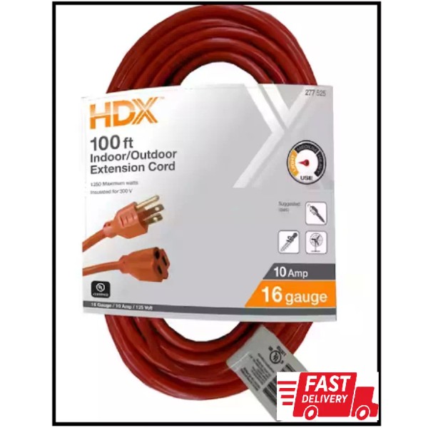 HDX 100 Ft. 16/3 Indoor/Outdoor Extension Cord, Orange