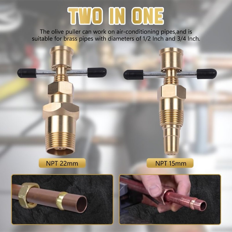 HEKOBAG Olive Remover Tool, 15mm & 22mm Olive Puller Olive Remover Puller Tool, Not Damage The Pipe Solid Brass Pipe Fitting, Compression Ring Puller Plumbing Tool for Copper Pipe