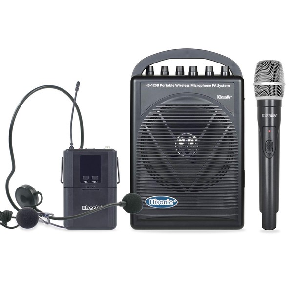 Hisonic HS120B Rechargeable & Portable PA (Public Address) System with Built-in UHF Wireless Microphone (1 Handheld +1 Belt-Pack)