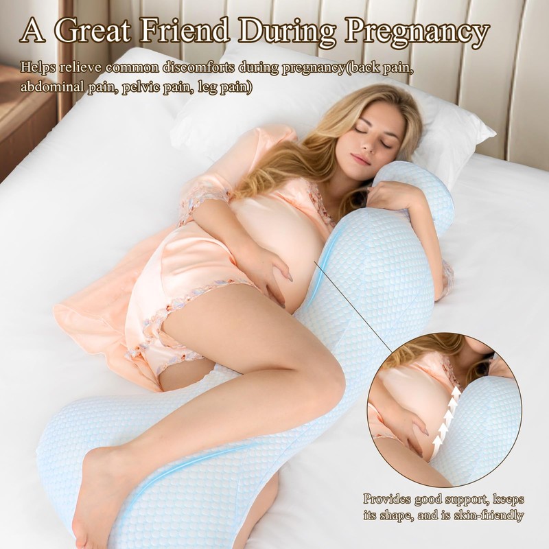 - 【Cooling Technology & Pregnancy Support】The innovative middle molecule technology in the pillowcase gives it a cool-to-the-touch feel, making it perfect for warm sleepers. This feature enhances comfort by regulating temperature throughout the night. The “fish belly” shape of the cooling body pillows for adults is also ideal for pregnant women, providing gentle and supportive relief for the belly, helping them sleep more comfortably.