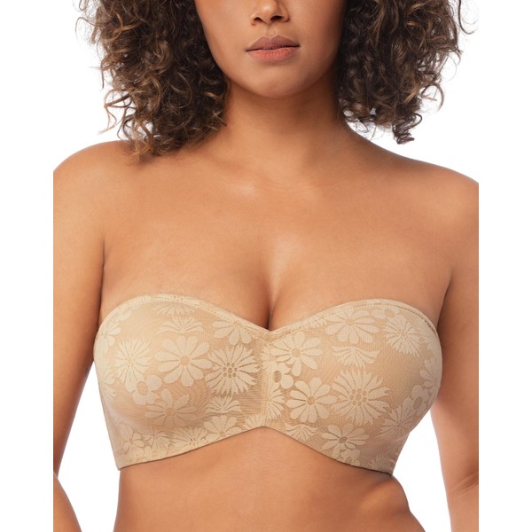 Strapless Bras for Women, Plus Size Bandeau Bra Lace Sexy Padded Underwire Balconette Bra for Big Bust Large Breasts