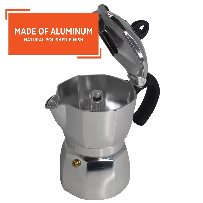 - PRACTICAL DESIGN: Crafted from sturdy cast aluminum, this espresso maker showcases a sleek, polished finish for timeless style and durability