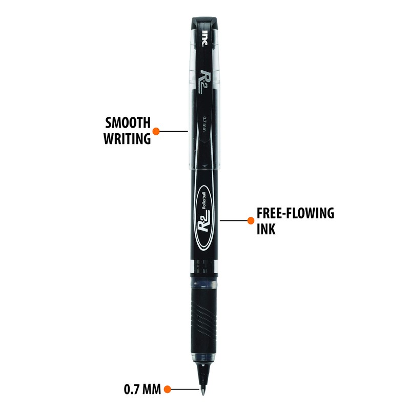 Inc. R2 Rollerball Pens - 0.7 mm Medium-Point Pen Set With Comfort Grip for School, Office, Writing, and Journaling, 12 Pack, Black Ink