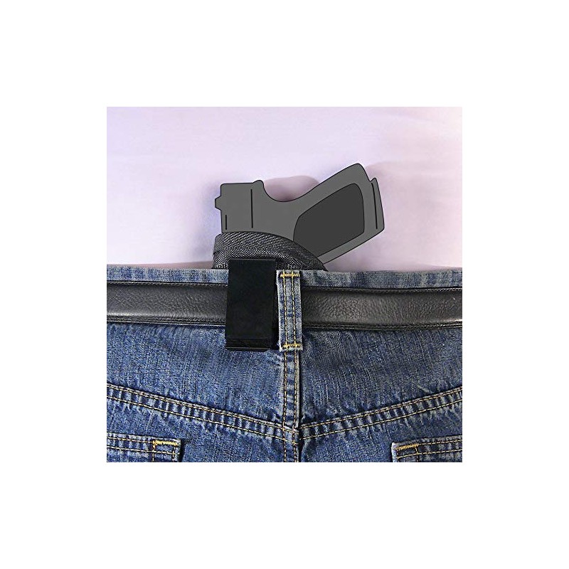- Heat treated metal clip holds strong and keeps the holster securely in place during a fast draw. The clip is reversible which allows carry in any position around your waistband including middle of back, right handed or left handed side, appendix carry, or 4 O’ Clock. Holster comes configured for right handed use in the middle of the back. The clip will fit up to a 2” belt.