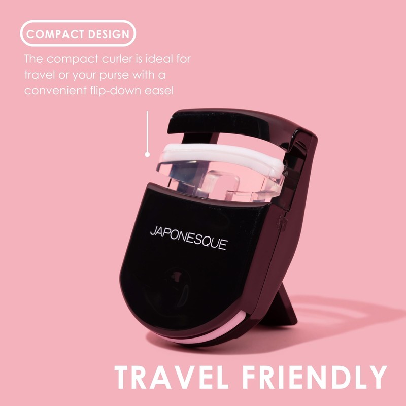 JAPONESQUE JAPONESQUE Travel Eyelash Curler, Black - Plastic Eyelash Curlers for Travel Makeup, Go Curl Lash Curler with Bonus Replacement Lash Pad - 1 Pack