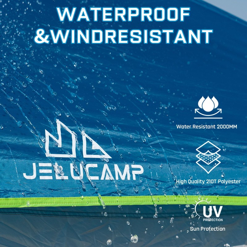 ✔️ PU3000 Waterproof Protection: Reinforced seams, a heavy-duty rainfly, and weatherproof fabric (210D Oxford) ensure dryness in rain, wind, or harsh conditions.