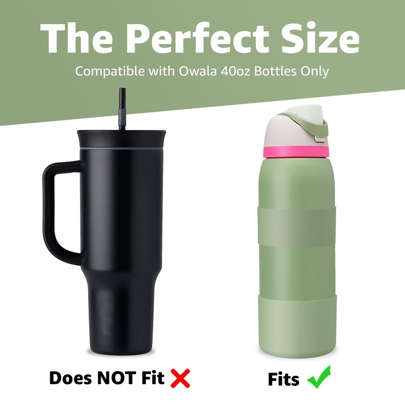 - Enhanced Bottle Protection - The Jmoe USA silicone boot sleeve and band grip combo is specially designed to be compatible with the Owala 40oz water bottle. This will NOT fit the 40oz Owala tumbler. Our silicone boot offers ultimate water bottle protection with its durable, scratch-resistant design, making it the perfect bottle guard for your Owala 40oz Water Bottle during outdoor activities or gym sessions.