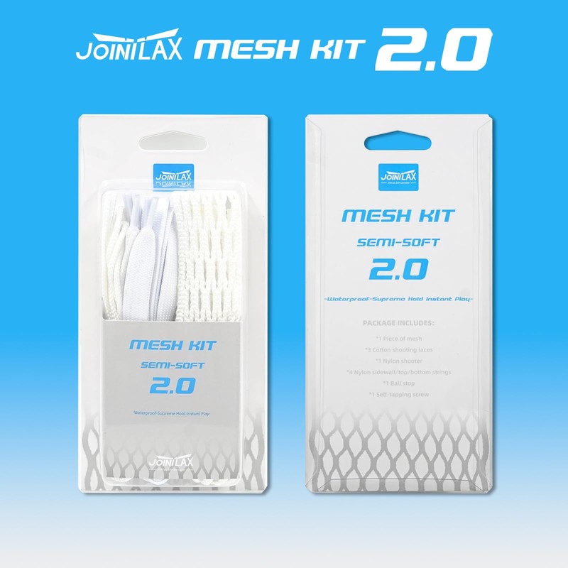 JointLax Mesh is made of high-quality nylon material and Waterproof. It is durable and long-lasting. Its shape will not deform or break. Due to its resistance to various weather conditions youll be able to use it both indoors and outdoors. The Lacrosse mesh kit includes 1x Nylon Mesh, 3 x Cotton shooting laces,1 x Nylon shooter 4 x Nylon sidewall/top/bottom strings,1 x Ball stop,1 x Self-tapping screw.