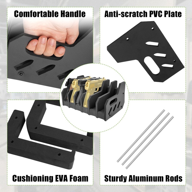 - *【Portable & Organized Storage】Built - in handles on both sides make it easy to carry. Placing it in the corner of a gun safe helps keep the space organized and tidy, and it protects pistols from bumping into each other with its cushioned foam.
