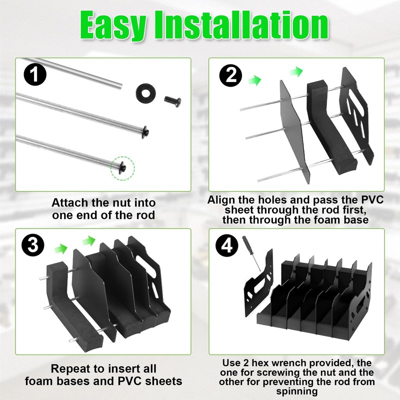 - * 【Quick & Easy Assembly】No wall - mounting needed. With the included hex wrench, the pistol organizer for gun safe can be assembled in less than 5 minutes by simply securing screws on the ends of the metal rod after sliding the polymer board and foam through it.