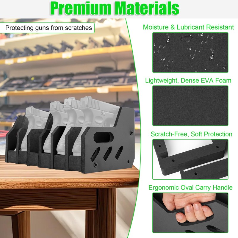 - *【Portable & Organized Storage】Built - in handles on both sides make it easy to carry. Placing it in the corner of a gun safe helps keep the space organized and tidy, and it protects pistols from bumping into each other with its cushioned foam.