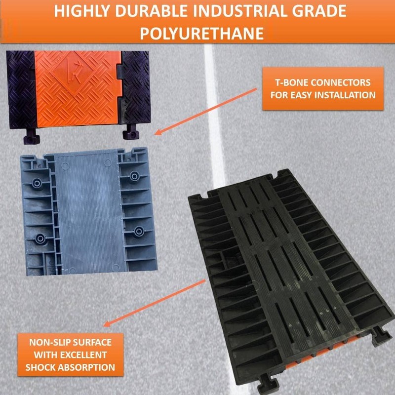 Kable Kontrol Atlas Heavy Duty Cable Protector Wire Ramp - 5 Channel 36” Long Black & Orange – 36,000 Load Capacity - Rubber Speed Bump and Wire Protector for Indoor and Outdoor Use - CP9984