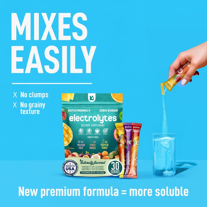 Keppi Electrolytes Powder Packets Assorted Tropical Flavors – Sugar Free Hydration Drink Mix with Potassium, Magnesium, Sodium – 30 Hydration Packets – Keto, Vegan, Fasting-Friendly, Zero Calorie