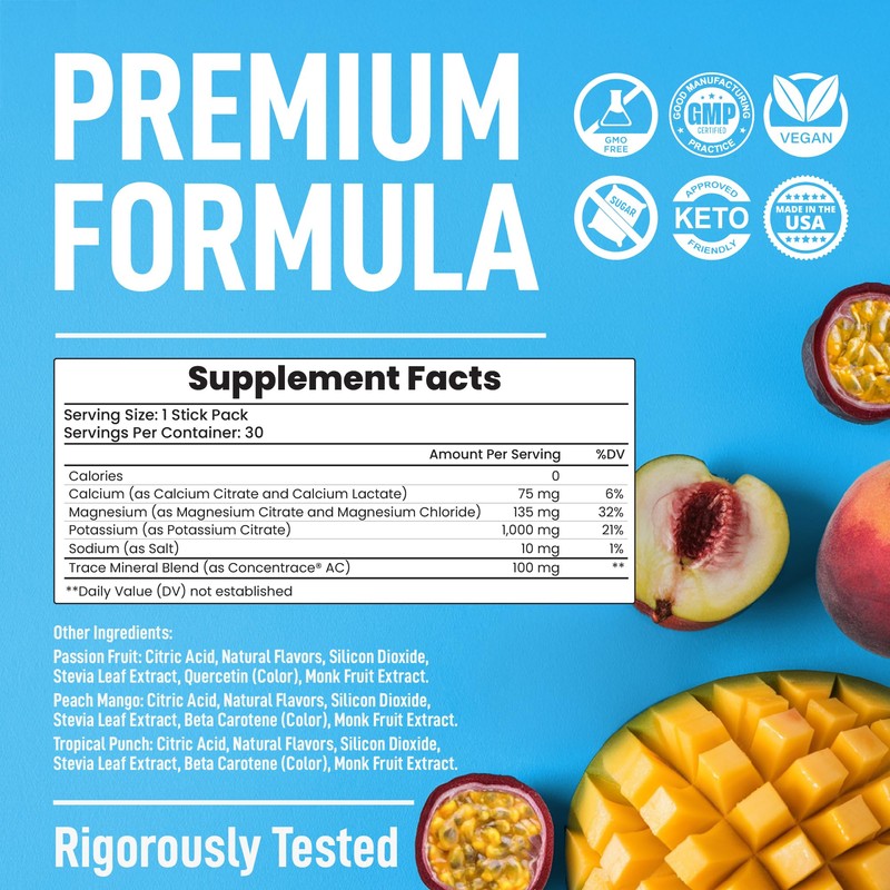 - Flavor That Hits Just Right - Ready to level up your hydration game? Our Tropical Punch, Passion Fruit, and Peach Mango variety pack electrolytes powder brings an exotic twist to your day that’s juicy, vibrant, and oh-so-refreshing. Enjoy clean, refreshing flavor with every sip—just Sugar Free Electrolytes that taste as good as they feel.