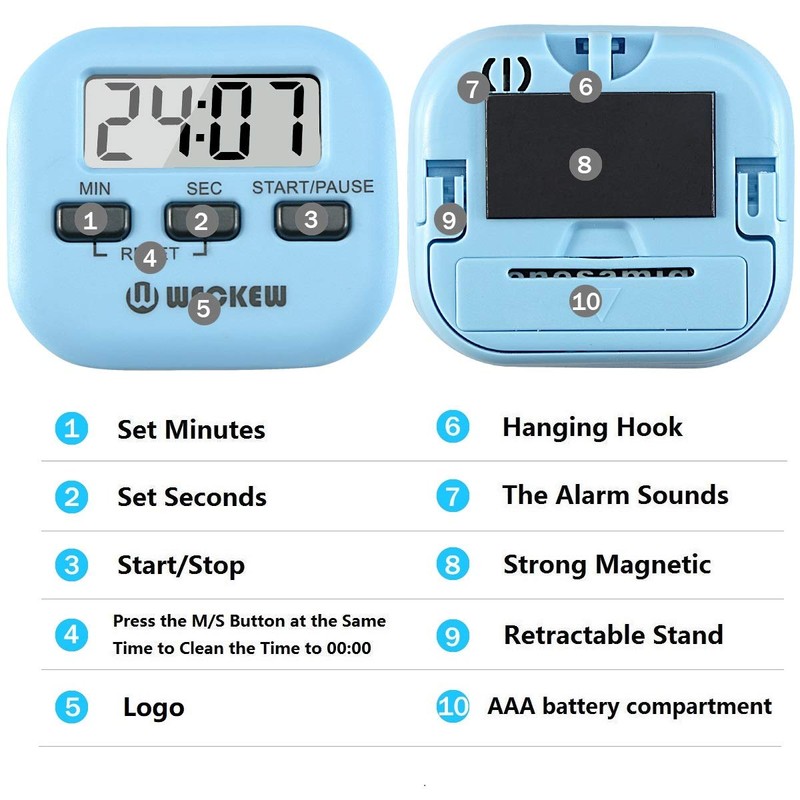 - EASY-TO-USE! Meanwhile Press "Min" and "Sec" to set to ZERO, and then start timing! Simple and easy button design, kids also can use it without thinking. Big Digits and Large LCD is ideal for those without best eyesight. Stronger magnet for Refrigerator, oven and durable back stand for kids, teacher, shower, bathroom using.