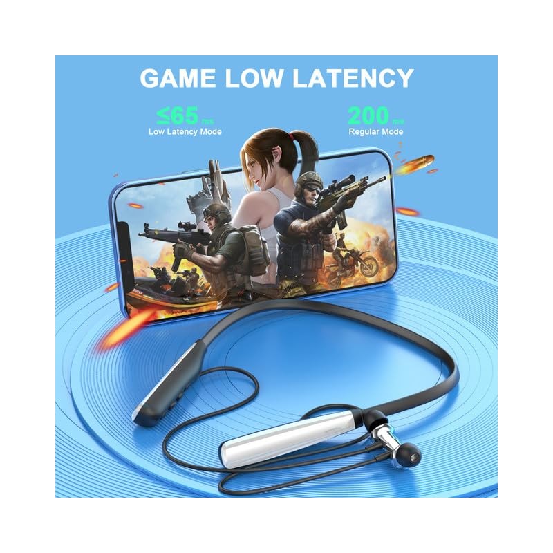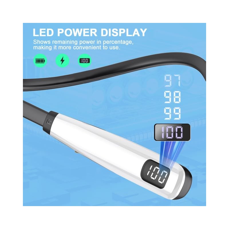 LAMA Bluetooth 5.4 Headphones Sports Earphones 80 Hours Playtime Noise Cancelling Wireless Sports Headphones In-Ear Headset with LED Display Game Mode Neckband for Hiking Running White