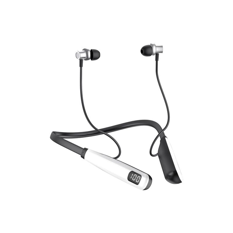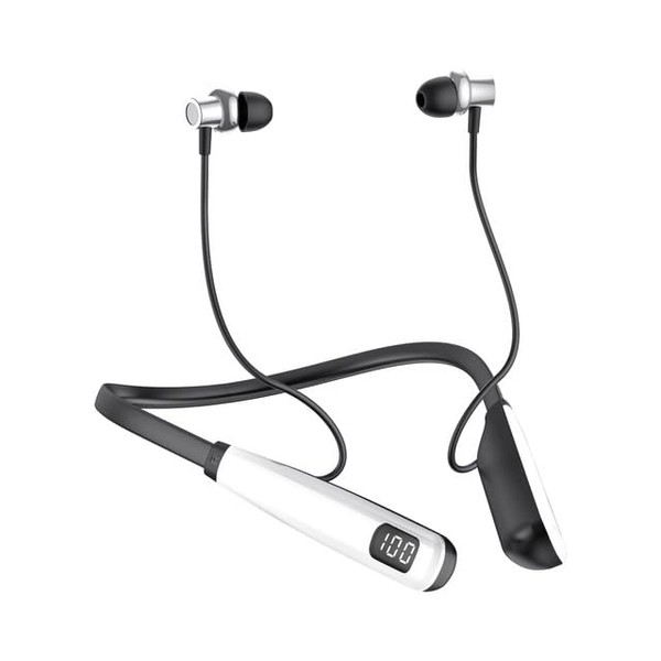 LAMA Bluetooth 5.4 Headphones Sports Earphones 80 Hours Playtime Noise Cancelling Wireless Sports Headphones In-Ear Headset with LED Display Game Mode Neckband for Hiking Running White