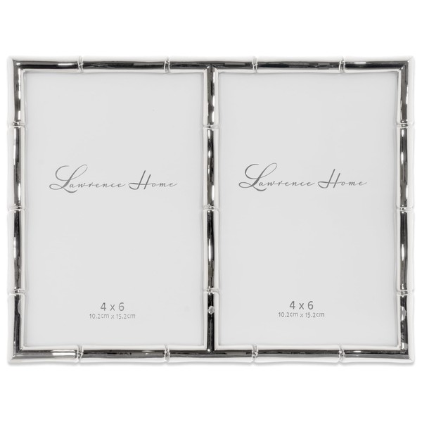 Lawrence Frames 4x6 Double Silver Metal Picture Frame with Bamboo Design