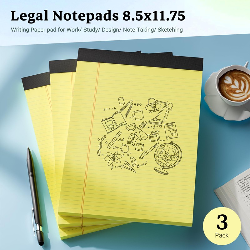 - 【Size & Quantity】The overall dimension of each legal pad is 8.5" x 11" . College ruled 9/32 inch line spacing for writing more notes on each sheet. You will get 3 pack of legal pads 8.5 x 11 yellow, each 8.5 x 11 lined paper pads includes 30 sheets, there are a total of 90 sheets to meet your daily usage and replacement. These Legal notepads 8.5 x 11 yellow perfect for writing notes, letters, thoughts and lists.