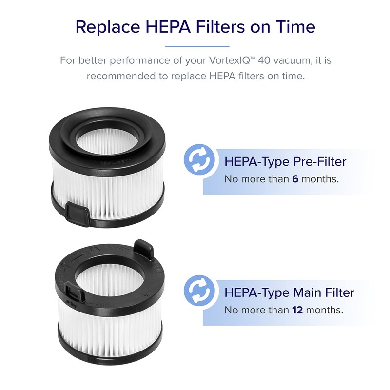 - Buy 1, Get 3: This HEPA filter set includes 1 HEPA-Type Main Filter and 2 HEPA-Type Pre-Filters, making it more affordable and convenient for you to purchase VortexIQ 40 replacement filters