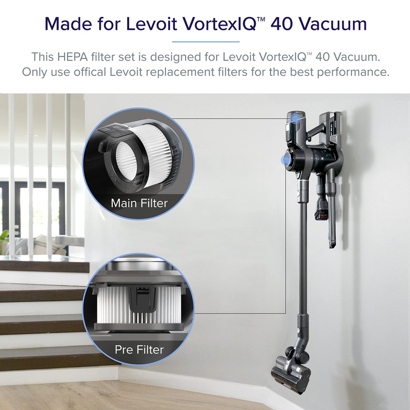 - Official LEVOIT Filters: This HEPA filter set is specially designed for the LEVOIT VortexIQ 40 Flex Cordless Stick Vacuum. Always use official filters to optimize product performance