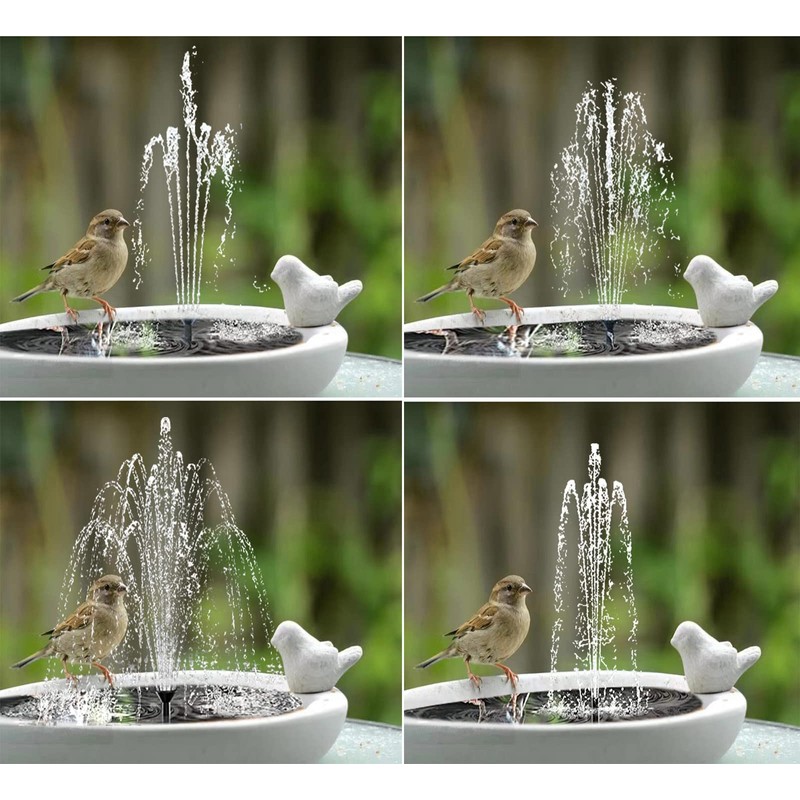 **Revitalize your back yard garden area. Definitely a consideration for those that have water features. Built a solar powered water feature with Lewisia Solar Water Fountain.** **Specification:** Solar Panel: 12V/5W Brushless pump input: DC 4.5-10V Maximum water flowing: 380L/h Maximum lift: 4ft / 1.2m Maximum water height: 2ft / 0.6m Cable Length: 10ft / 3m Solar Panel Size: 6 * 5 inch / 15*12.5cm Water Pump Size: 1.8 x 1.6 x 1.4 inch / 4.6 x 4 x 3.5 cm Without on/off switch. **Package:** -1x Solar Panel -1x Water Pump -8 x Nozzles -1x User Manual **Note:** 1\. Make sure that you submerge the pump in water before uncovering the panel because it starts as soon as the sun hits the panel. If you don't want the water to splash out of the bird bath, don't put the attachments on so it's more of a bubbler. 2\. Don’t make the pump work without water for a long time, or its lifespan will be shortened. 3\. Don’t put the solar panel and the control box in water, or it will be damaged. 4\. Clean the pump regularly. If it’s duty, it will stop working. 5\. The solar panel is made up of glass and metal. You must be careful when using it. And keep out of reach of children.