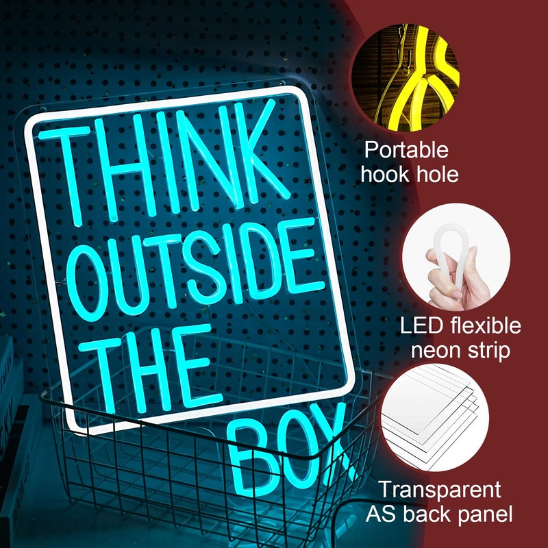 - High quality materials: Think outside the box neon light sign is composed of acrylic backboard and PVC material. Compared to traditional lighting fixtures, this neon light has a longer service life and relatively lower maintenance costs.
