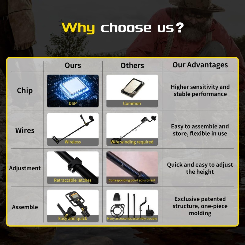 - 【5 Powerful Modes& Higher Accuracy】❶"IRON"-All metal mode, any metal searched is alerted to notify you. ❷"DISC"-Reject unwanted metal types. ❸"NOTCH"-6 types of metal can be selected at will to reject or not. ❹"PP"-Pinpointer metal detecting, precise positioning of metals. ❺"SENS"-Adjust the signal sensitivity. Professional adult metal detector built-in upgraded DSP chip, detection stability is stronger, can detect underground up to about 10 inches deep 25 cents coins.