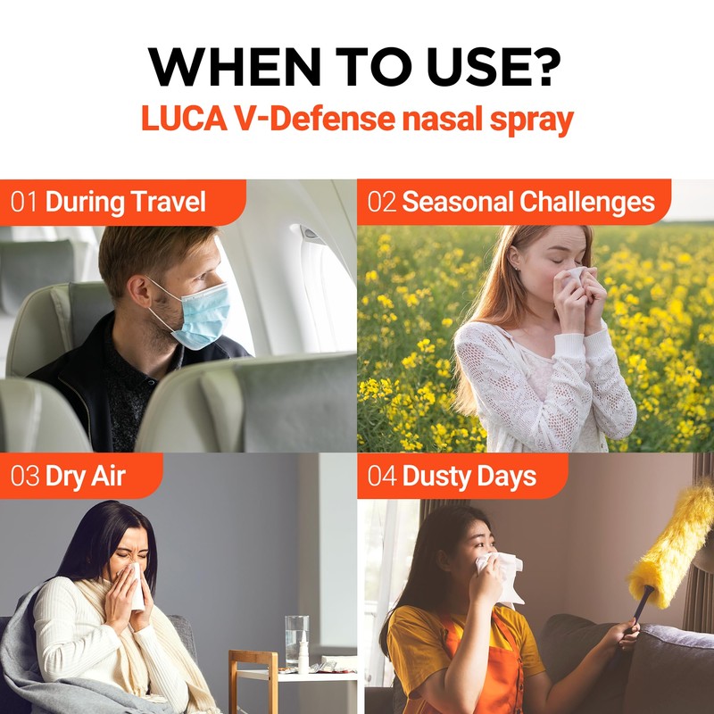 LUCA V-Defense™ Nasal Spray with Lambda Carrageenan, Menthol, and Eucalyptol – Drug-Free Nasal Congestion Relief – Moisturizes Nasal Passages and Reduces Contaminant Adhesion – 0.67 fl oz (200 Sprays)