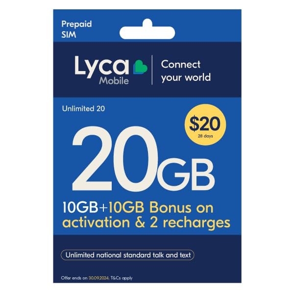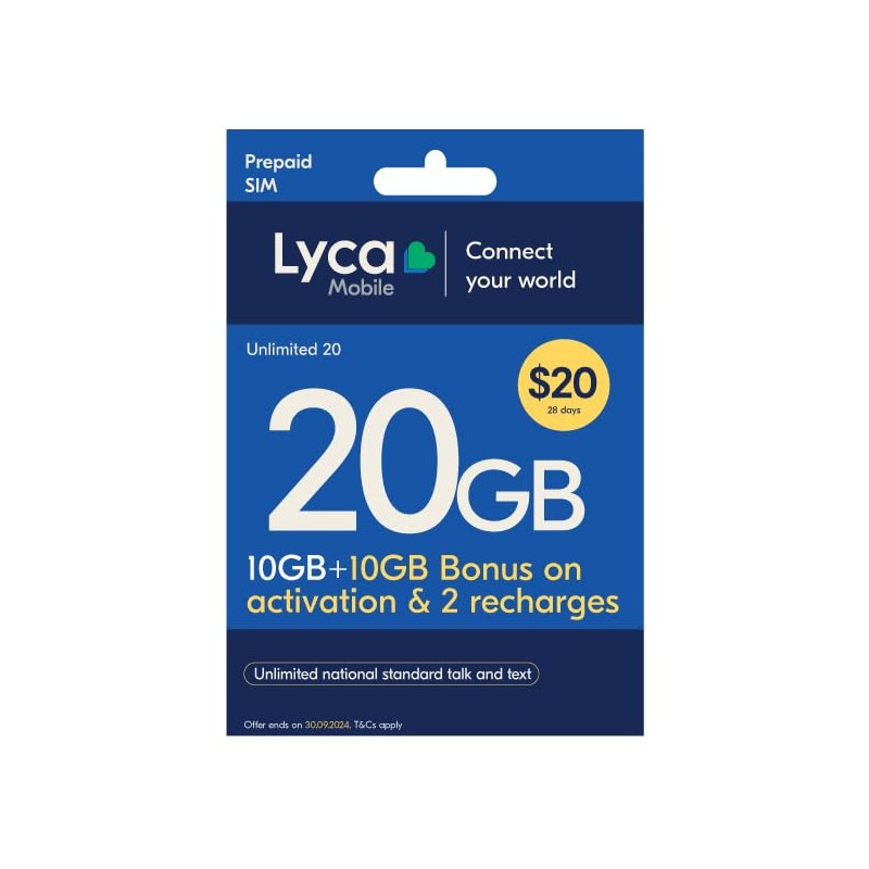Lyca Mobile AU Unlimited Plan 20 Prepaid SIM $20 for $6