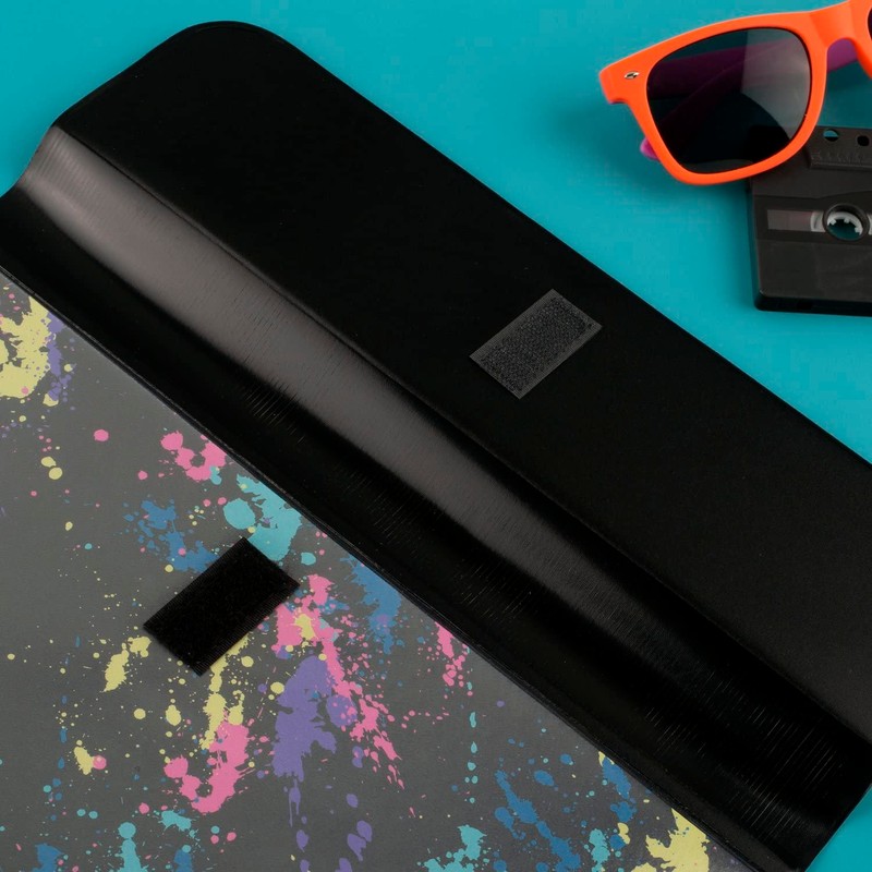 It's time to get nostalgic! Remember leg warmers, bold colors, big hair and oversized blazers? This original Trapper Keeper keeps the 80s and 90s vibe alive. Nothing falls out even if you drop it! All your stuff stays trapped inside with a hook and loop closure. Papers stay in place with two vertical pockets that trap loose papers so they won't fall out. Common stats are printed right on the folders so you don't forget the basics. Store the folders and other 3-hole punched sheets in the sturdy 1" metal binder rings. A metal clip on the back of the Trapper Keeper secures loose papers and notes while on the go. Store even more in the inside pocket, perfect for keeping hand-outs, assignments and extra paper close at hand.