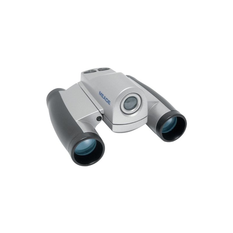 Get close to the action with this combination binocular and digital camera by Meade and capture it digitally in photos or instant replay video. Perfect for sporting events, races or nature hikes, the built-in 640x480-resolution digital camera captures what you see in the 8-power view of the binoculars. The compact design is versatile and lightweight, and the easy to use digital camera features automatic exposure and focus-free settings. Capture up to 360 images or 3 minutes of instant replay video with the 16MB of memory, then download and edit the images on your PC with the supplied USB cable and software. Other features include a carrying case, neck strap and cleaning cloth. Imported. 3Hx3-1/2Wx4-1/4D".