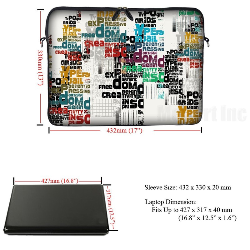 Meffort Inc 17 17.3 inch Neoprene Laptop Sleeve Bag Carrying Case with Hidden Handle and Adjustable Shoulder Strap - Messy Words