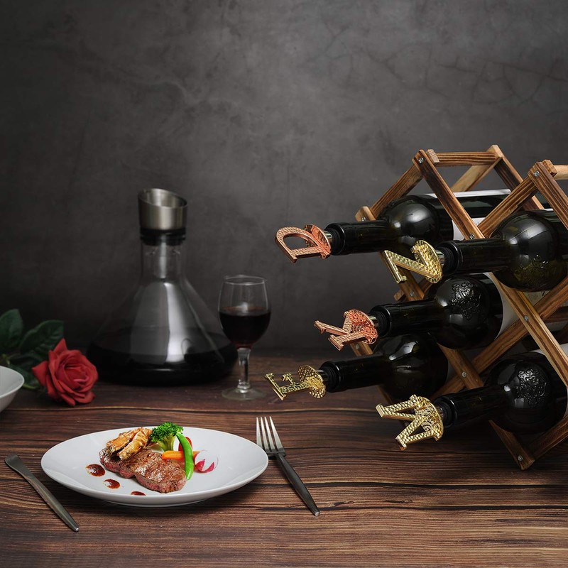 - 【A Bright Shot Of Color In The Kitchen or Office Countertop】Unique stylish appearance and personality initial design to increase party atmosphere easily, impress your guests. Different letters wine stoppers easily to distinguish between wines during a cheers party.