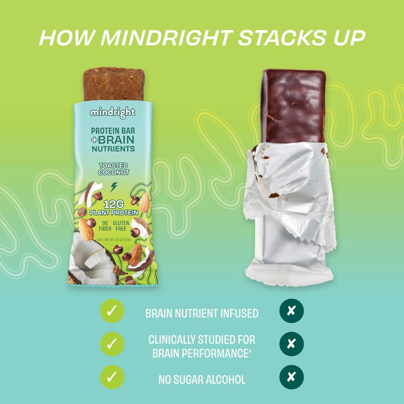- TOASTED COCONUT: With a 12 months shelf life - Enjoy guilt-free snacking with Mindright’s nutrient-filled, delicious brain food bars. Toasted coconut is the perfect coconut goodness!